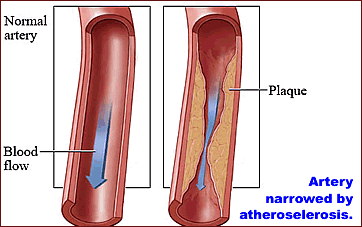 Atherosclerosis, or "hardening of the arteries," refers to the build-up of plaque composed of cholesterol, calcium, and other substances in the arteries, leading to inflammatory changes and impaired blood flow. People with coronary artery disease -- atherosclerosis of the coronary arteries that supply blood to the heart -- may experience symptoms such as angina and are at increased risk for myocardial infarction (MI), or heart attack.