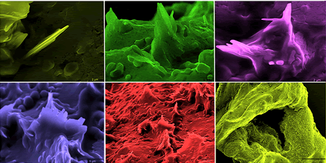 Caption: The protruding elements seen in the different slides are cholesterol crystals. Those elements are arising from within the artery wall, causing tearing and damage to the artery. The colors have been added for enhancement and imagery (Source: Michigan State University).